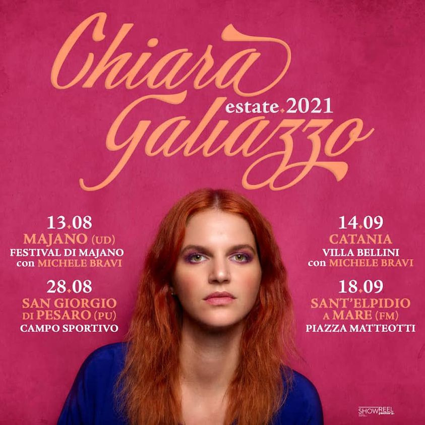 CHIARA GALIAZZO Luogo: Piazza Matteotti Data: 18 settembre ore 21,30 Ingresso libero fino ad esaurimento posti Obbligatoria prenotazione ESCLUSIVAMENTE tramite il modulo online LINK DIRETTO https://santelpidioamare.mycity.it/agenda-smart/506185/argomenti/3181 GREEN PASS OBBLIGATORIO E DA ESIBIRE ALL'INGRESSO DEL LUOGO DELL'EVENTO Per ogni persona che desidera partecipare all'evento va ripetuta l'operazione di registrazione inserendo ogni volta cognome, nome, cellulare ed email. La prenotazione è nominativa e riguarda sempre solo una persona. info (SOLO INFO!!!) 320 8105996 dalle 10 alle 20 LA PRENOTAZIONE E' SINGOLA; PER OGNI SPETTATORE VA FATTA LA REGISTRAZIONE INSERENDO COGNOME, NOME, EMAIL E TELEFONO E AUTORIZZANDO POSTI SOLO A SEDERE IN CASO DI CONDIZIONI METEO AVVERSE IL CONCERTO SARA' RINVIATO A DATA DA DEFINIRE