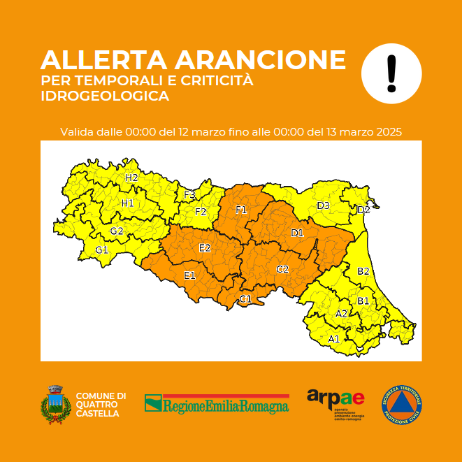Il Servizio Meteo della Regione Emilia Romagna ha emesso un'ALLERTA ARANCIONE per temporali e criticità idrogeologiche valido per la giornata di domani, mercoledì 12 marzo. Sono infatti previste condizioni favorevoli allo sviluppo di temporali forti🌧️, più probabili sulsettore centro-occidentale, con precipitazioni intense che possono generare diffusi fenomeni di ruscellamento lungo iversanti, rapidi innalzamenti dei livelli idrometrici nei corsi d’acqua e fenomeni franosi, più diffusi sulla fascia montanacentro occidentale. Le precipitazioni previste possono generare superamenti della soglia 2 nei corsi d'acqua del settore centro-occidentale. Inoltre non si escludono venti forti (50-61 Km/h) da sud-ovest con possibili temporanei rinforzi o raffiche di intensità superiore sul crinale appenninico. Come sempre in questi casi raccomandiamo la massima attenzione e prudenza.