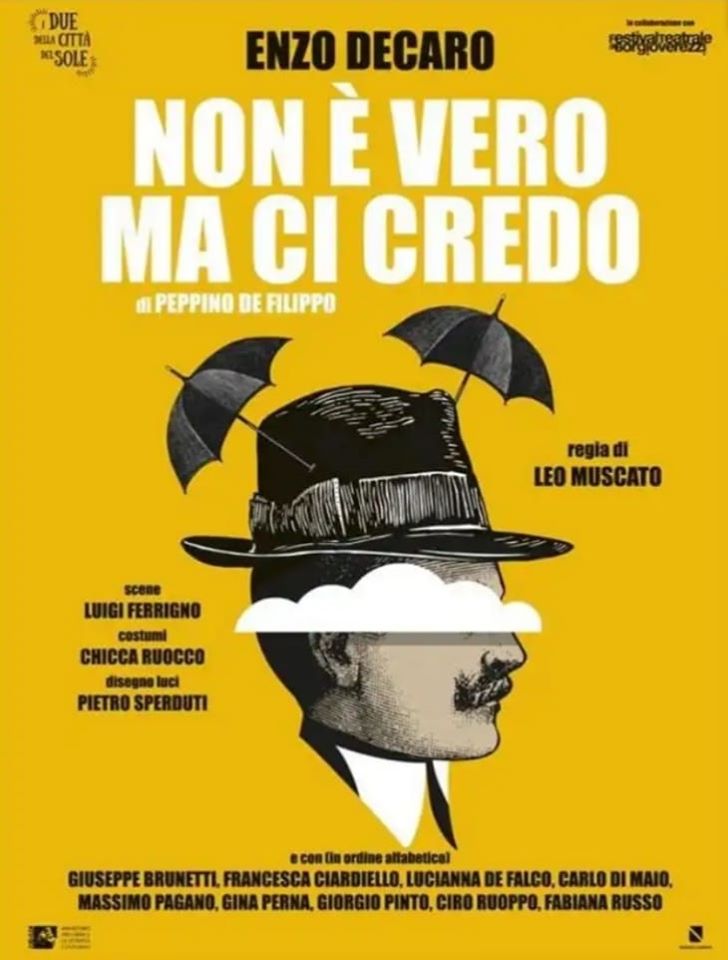 Questa sera, per la StagioneTeatrale PROSA-MUSAE 2019/2020 del Teatro Cicconi, in collaborazione con AMAT, andrà in scena: NON E' VERO MA CI CREDO di Peppino De Filippo con Enzo Decaro, regia di Leo Muscato. Ore 21.15, Teatro Cicconi. Acquisto dei biglietti sul circuito Amat https://www.amatmarche.net/biglietterie/ - on line su www.vivaticket.it Per Informazioni: Amat T. 071 2072439 - Amat call center T. 071 2133600 - Teatro Luigi Cicconi T. 0734 859110 - 320 8105996 (numeri attivi solo il giorno dello spettacolo)