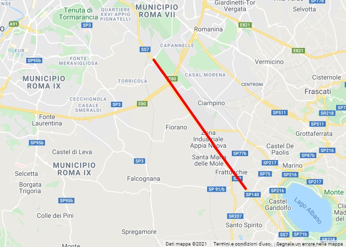 Via Appia dal Km. 14+000 al km 21+200 corsia di sorpasso